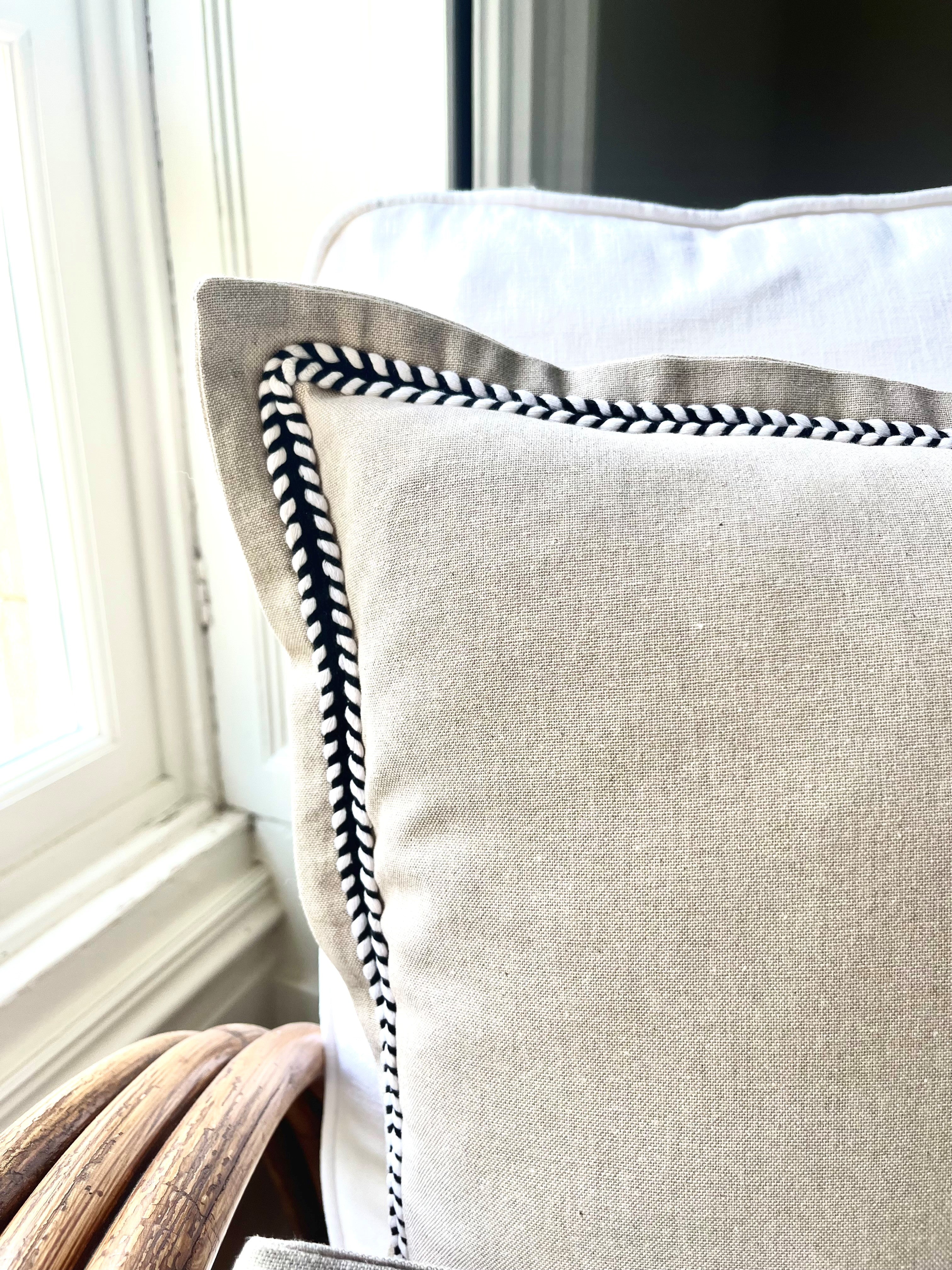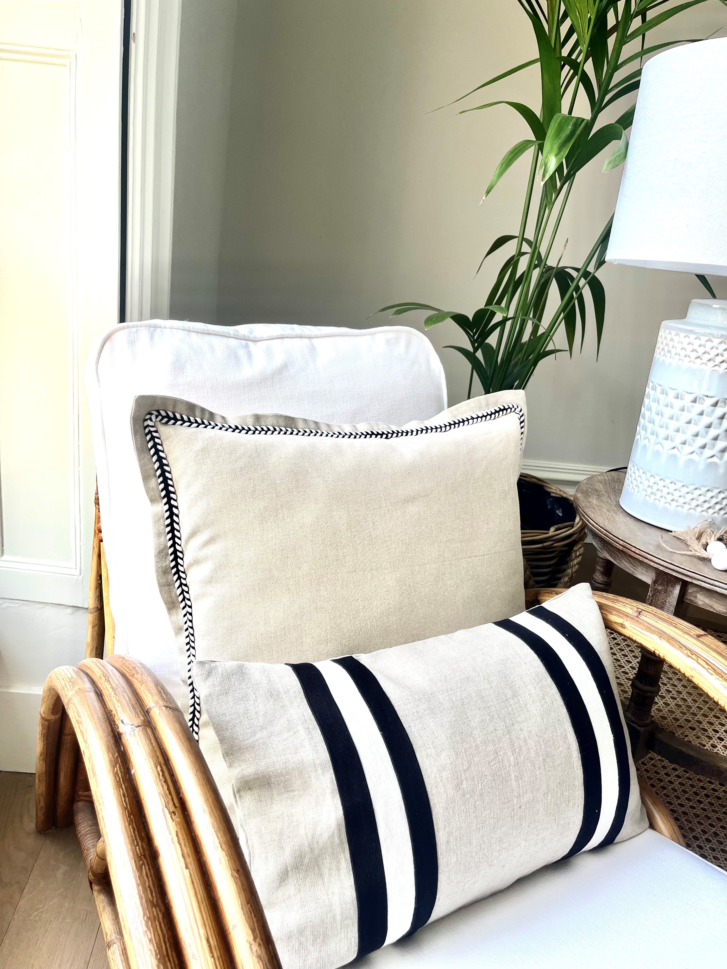 Our Como Plait cushion is both versatile and striking. Available in a Navy/White combo, or our new Natural/White/Black option. It works well with a number of our other Paloma Living Australia cushions. Team the Como Navy with our Santorini or South Pacific cushions and go all coastal. Our new natural option looks incredible with our Bronte range or go all out tropics and team it with Bangalow! Either way, you will have a sofa that looks elegant, fresh and ready for Summer.