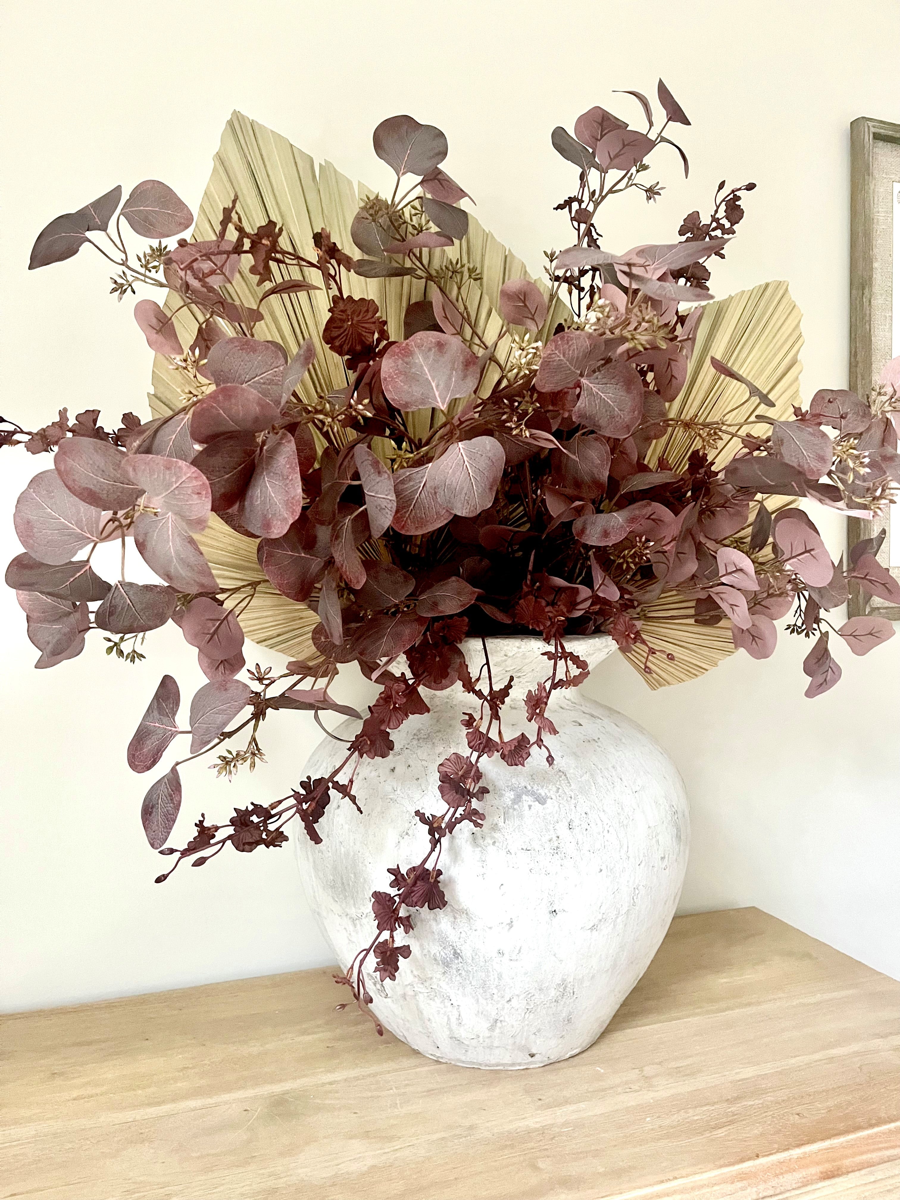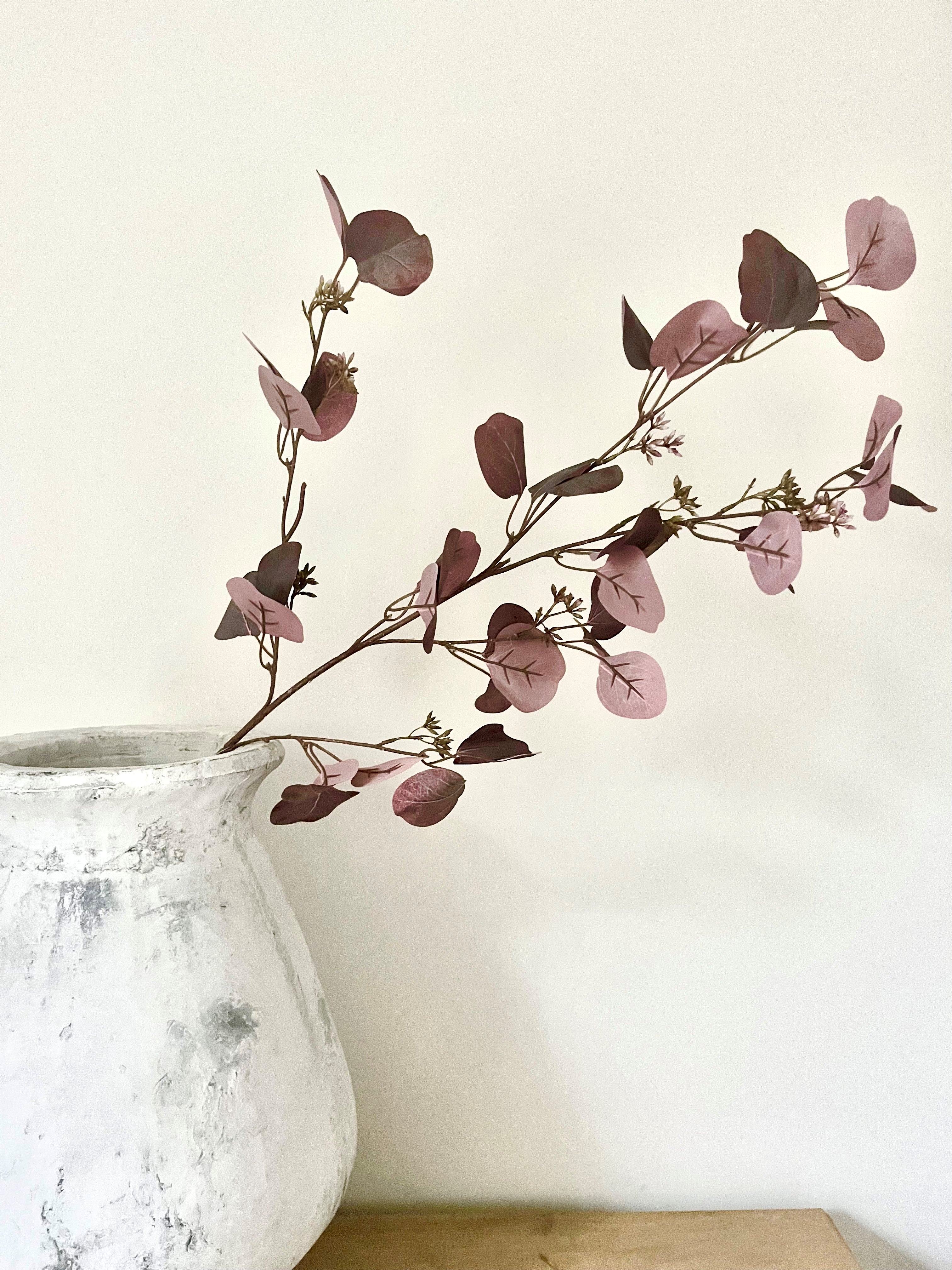 Like that wild eucalyptus look but want to keep it seasonal ? Look no further than our Autumn Plum Eucalyptus. Featuring long bendable stems to create those natural wild shapes & beautiful life-like plum coloured leaves & berries.