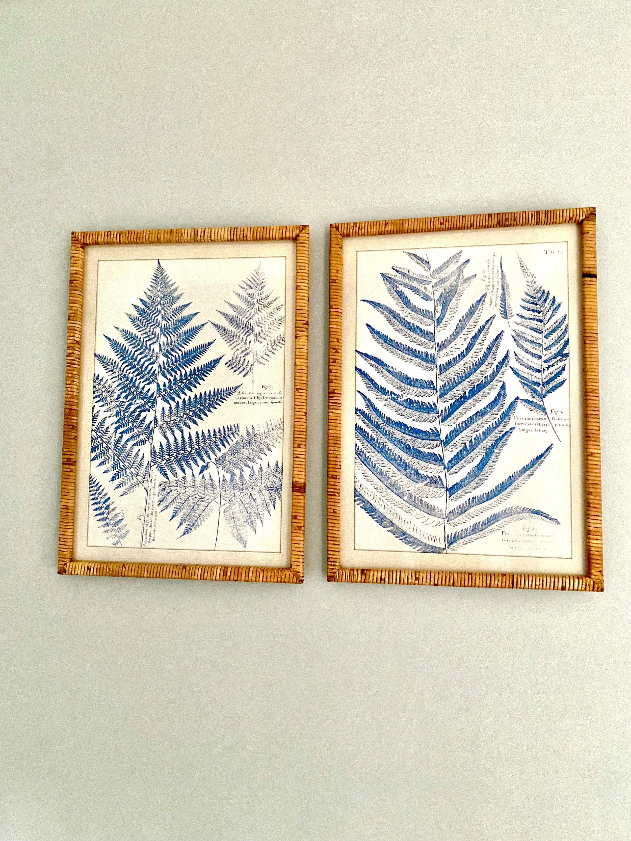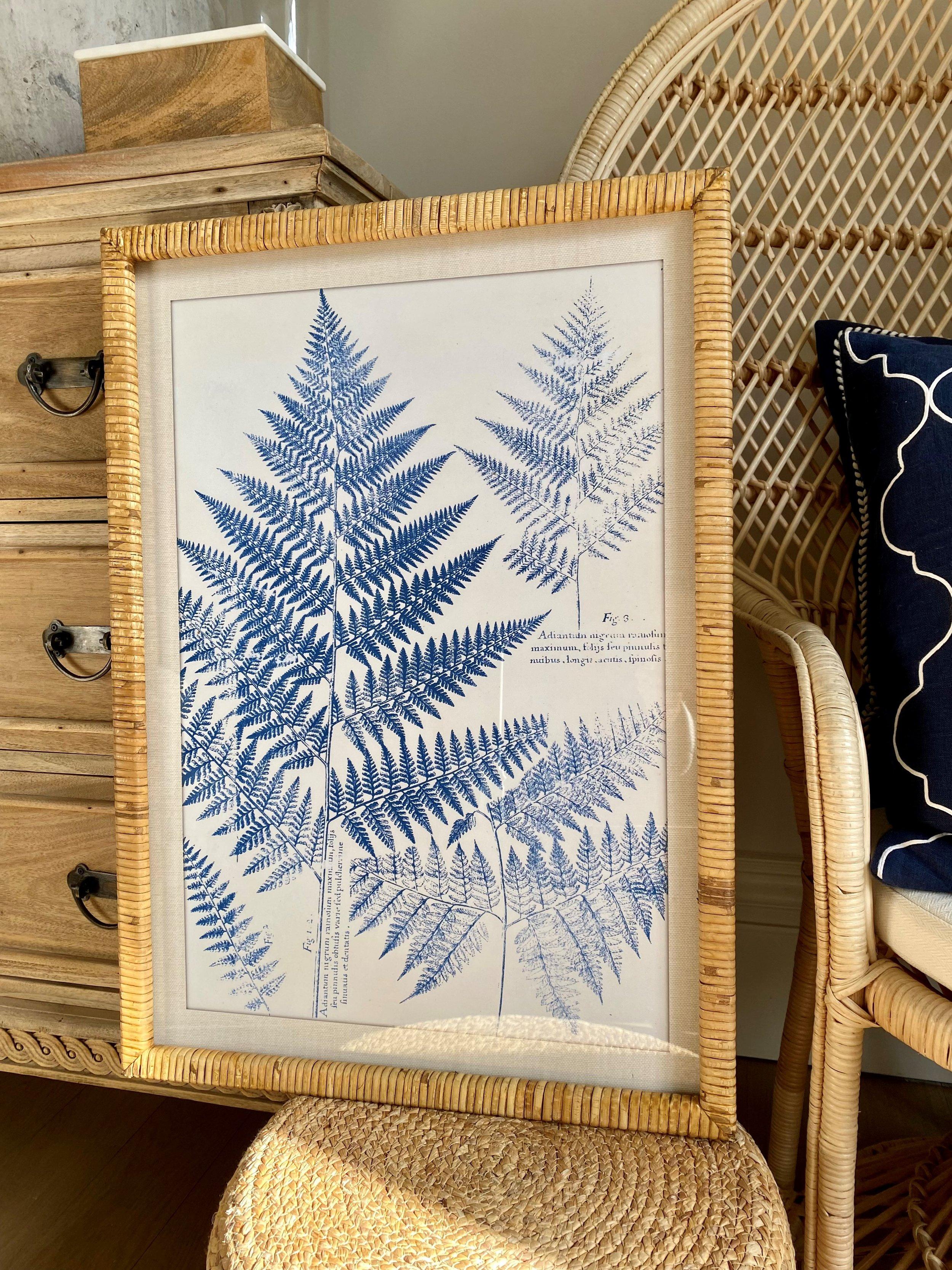 Our Bahamas Wall Art will have you dreaming of sunshine days and golden sands. Featuring botanical prints of tropical ferns, they add a pop of blue to a neutral coastal palette. To complete the look the set of 2 prints come in rattan bound frames and look just perfect when placed side by side. A subtle take on a Island Home look.