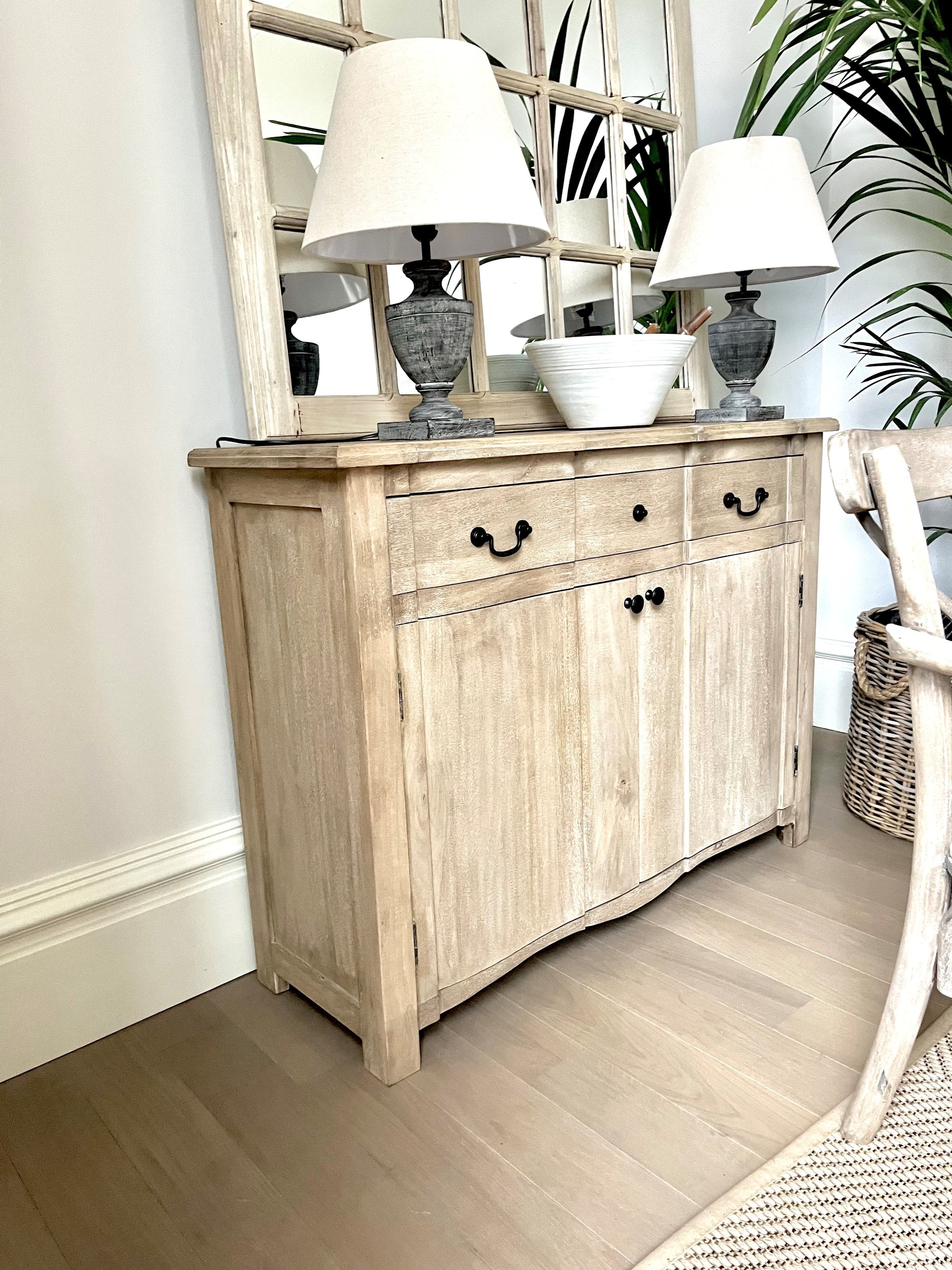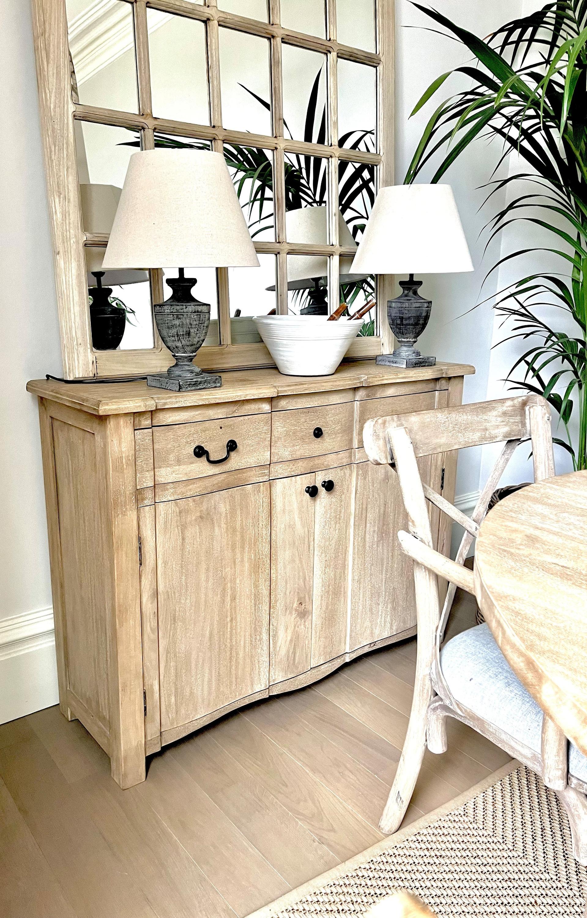Part of our gorgeous Bundanoon furniture range are the 2 door and 4 door Sideboards. Made from the same Grey Washed Acacia wood, with a soft bleached finish - these sideboards would look perfect in either a living or dining area. Use as we have to create a wow factor, with our Hamptons Mirror and matching Oatley Black Urn Lamps, as a console table in a hall with one of our beautiful white washed vases & foliage combo’s or as a useful TV cabinet - the choices are endless!