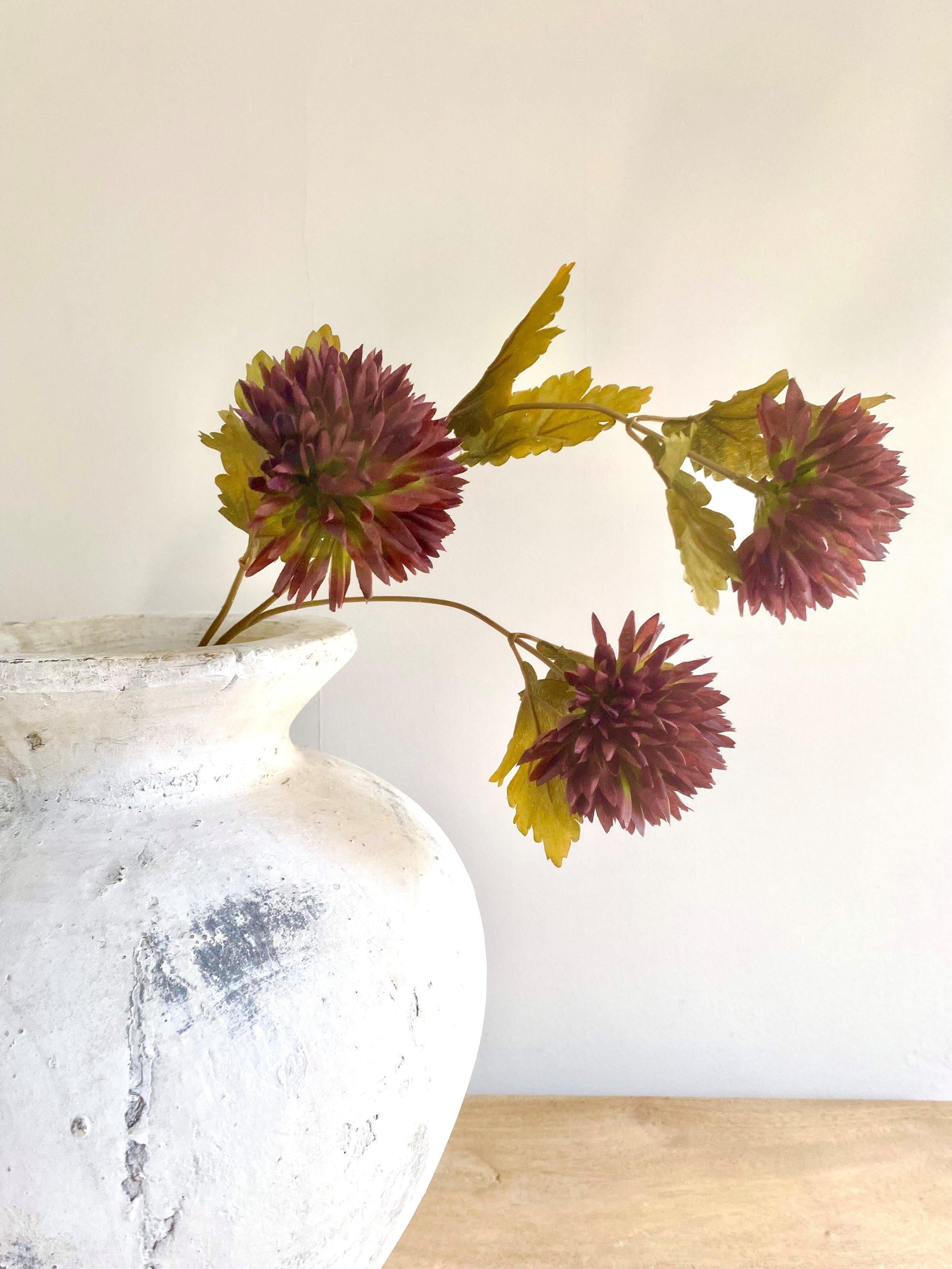 Perfect to add a pop of colour to your existing Island Home foliage is our Autumn Chrysanthemum. Chocolate with a hint of red, seen here teamed with our Single Eucalyptus stem in our every popular Sanur Vase.