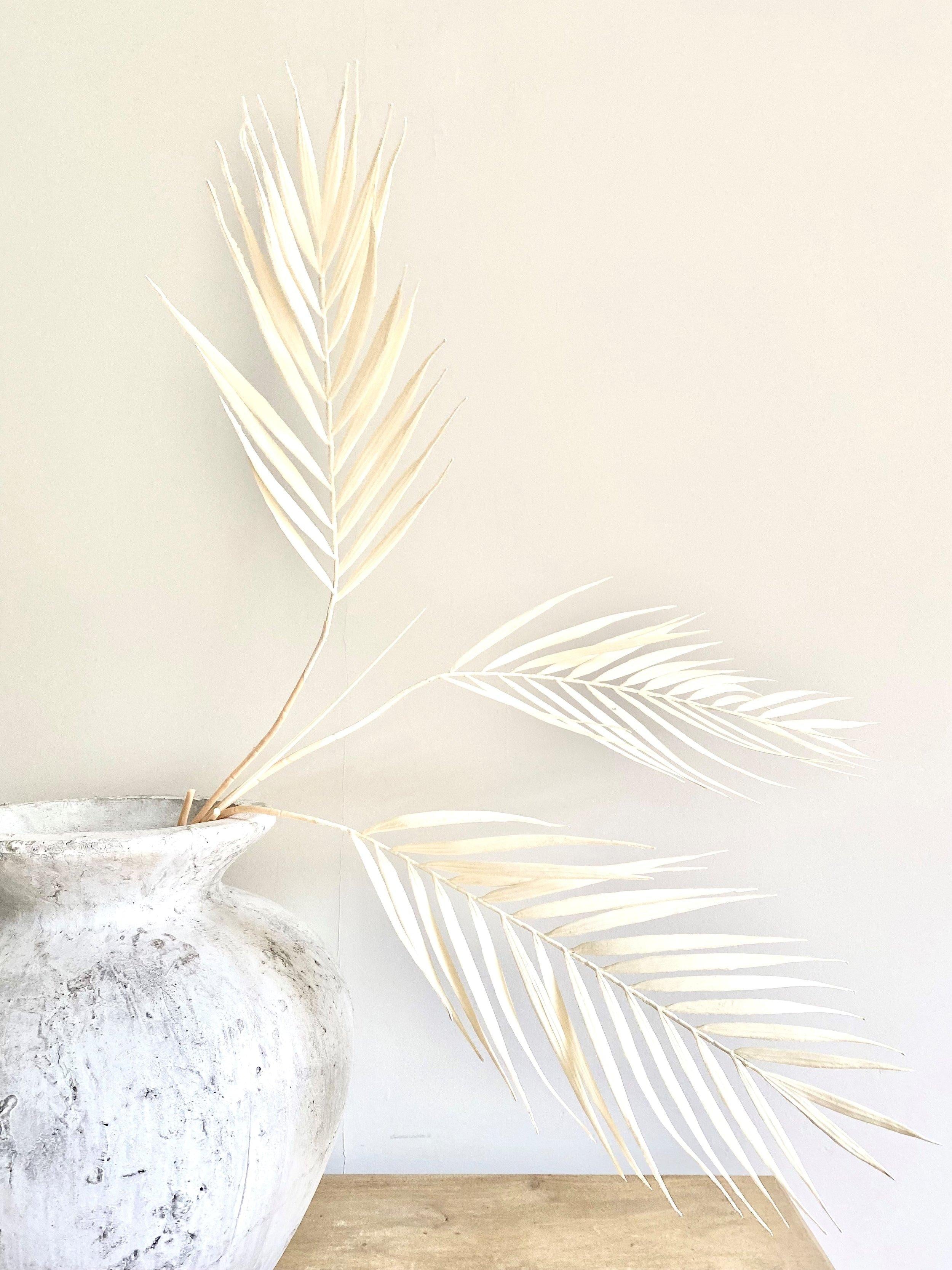 A new edition to our every popular foliage range is our Bleached White Palm Spray. Adds a monochromatic feel to your natural stone vase when paired with our Bleached White Eucalyptus Spray. The perfect summer update for our Kuta, Sanur or Ubud vases.