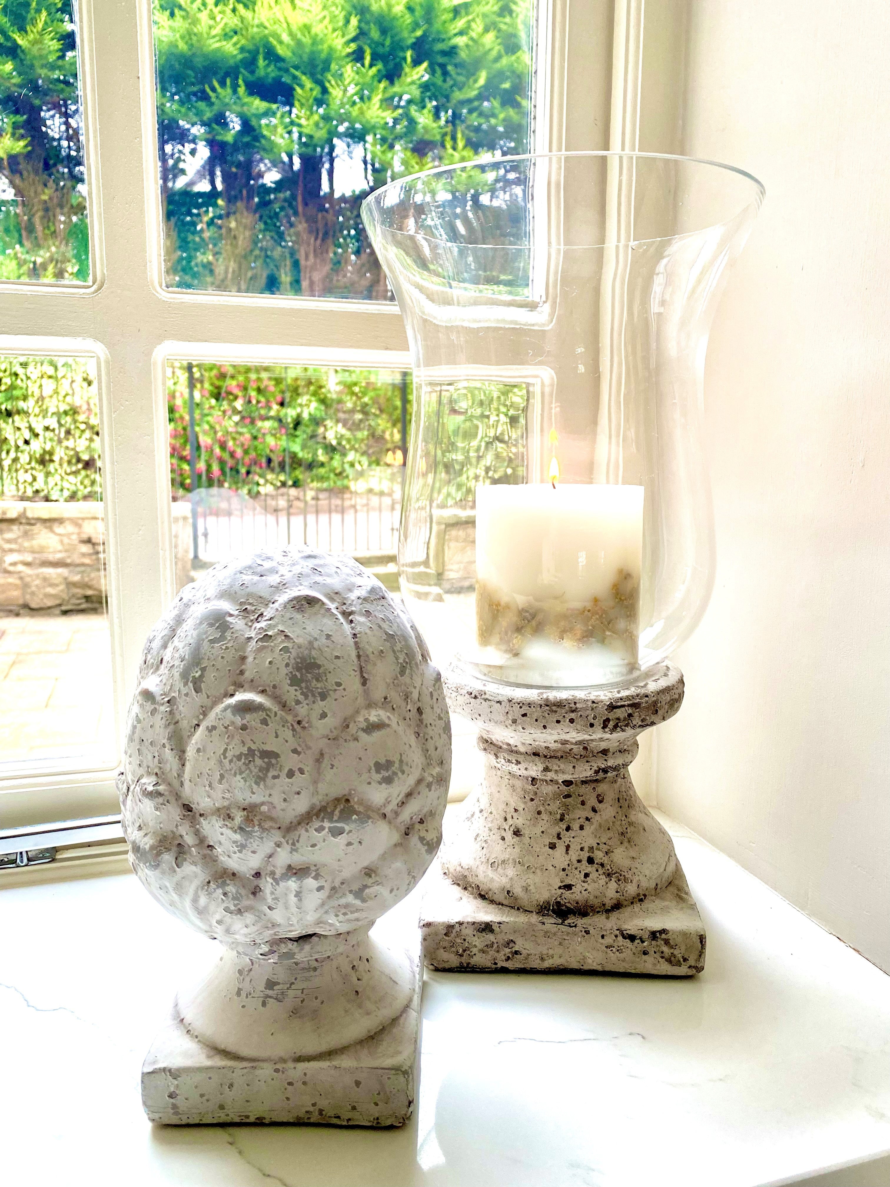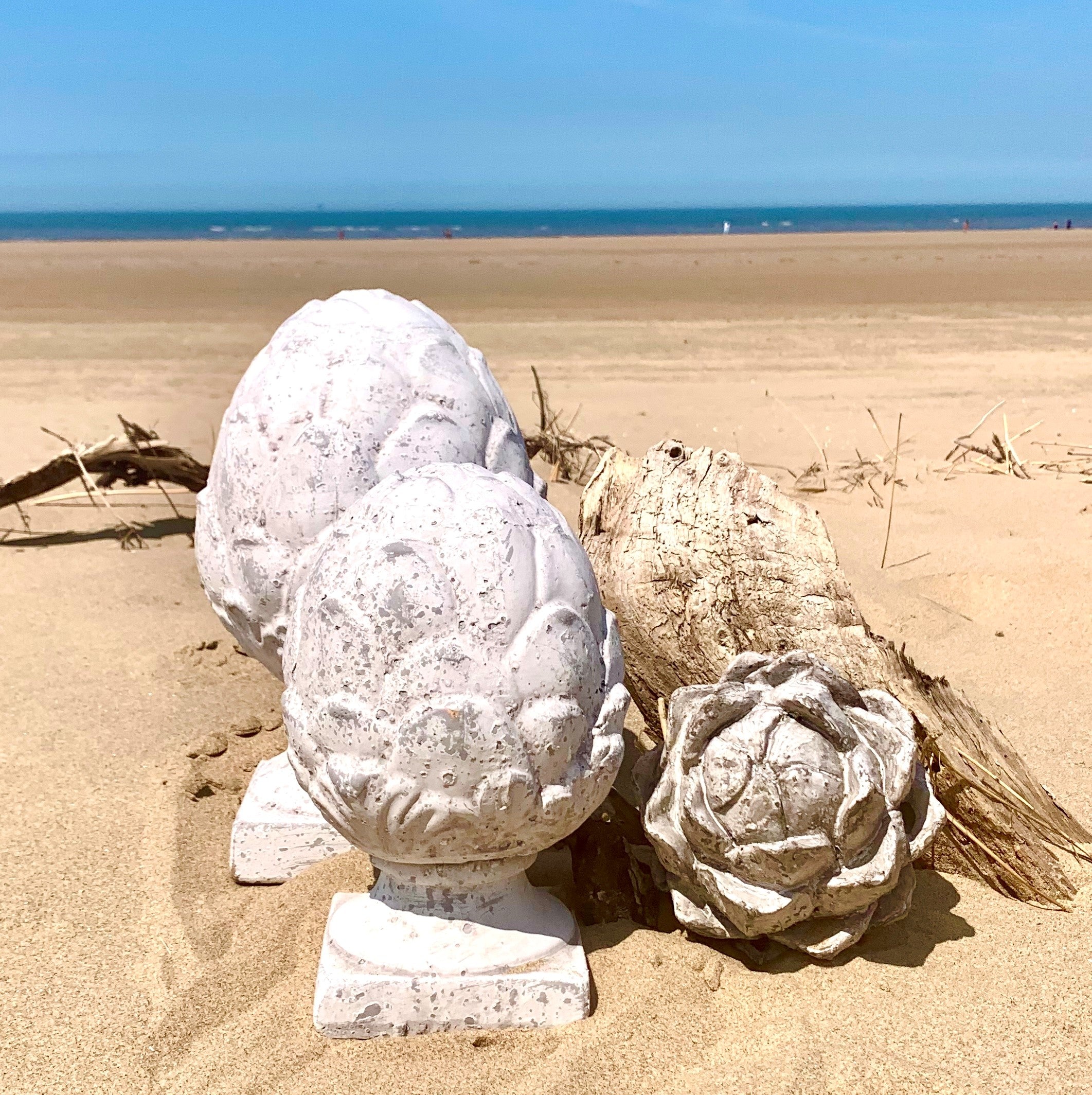 Bleached stone with a rustic feel.. this standing Artichoke ornament will work brilliantly on a hall table, bookshelf or popped on your mantelpiece. Placed in pairs they give any space a symmetrical, polished look.